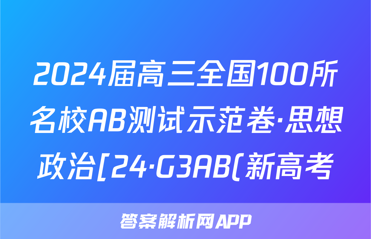2024届高三全国100所名校AB测试示范卷·思想政治[24·G3AB(新高考)·思想政治-R-必考-FJ]五试题正在持续更新,目前2025~2026英语周报答案网为大家整理了相关试题及答案,供大家查缺补漏,高效提升成绩。