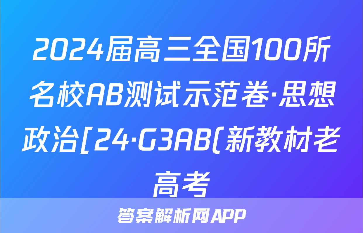 2024届高三全国100所名校AB测试示范卷·思想政治[24·G3AB(新教材老高考)·思想政治-R-必考-HEB]四试题正在持续更新,目前2025~2026英语周报答案网为大家整理了相关试题及答案,供大家查缺补漏,高效提升成绩。