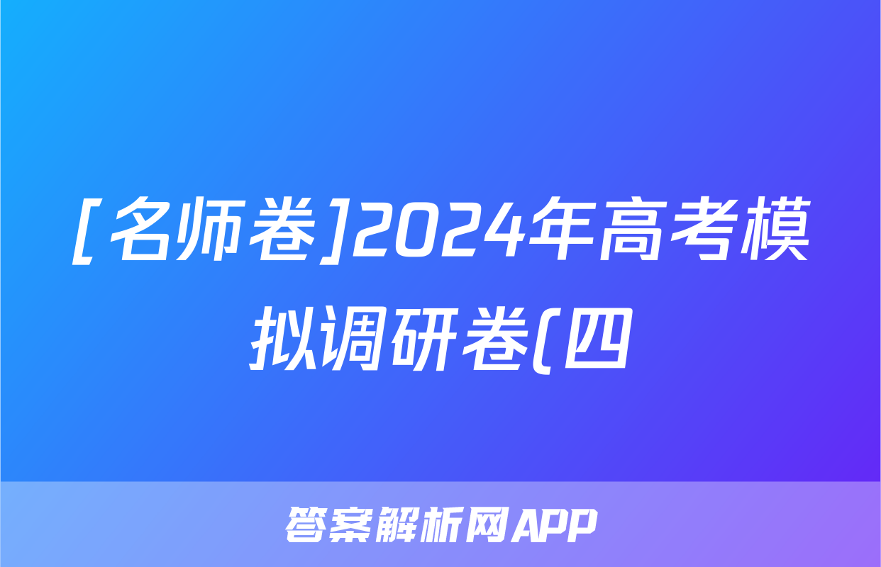 [名师卷]2024年高考模拟调研卷(四)4英语(新高考◇)答案正在持续更新,目前2025~2026英语周报答案网为大家整理了相关试题及答案,供大家查缺补漏,高效提升成绩。