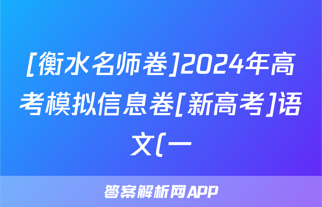 [衡水名师卷]2024年高考模拟信息卷[新高考]语文(一)1试题正在持续更新,目前2025~2026英语周报答案网为大家整理了相关试题及答案,供大家查缺补漏,高效提升成绩。