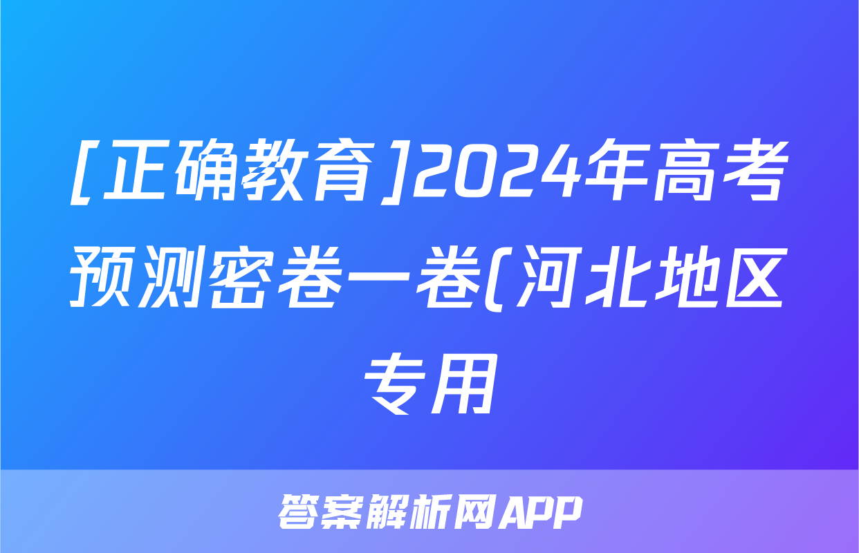 [正确教育]2024年高考预测密卷一卷(河北地区专用)历史(河北)试题正在持续更新,目前2025~2026英语周报答案网为大家整理了相关试题及答案,供大家查缺补漏,高效提升成绩。