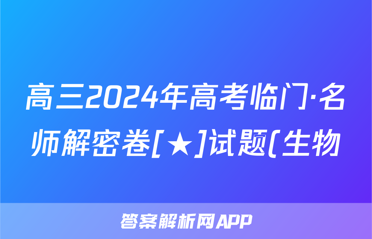 高三2024年高考临门·名师解密卷[★]试题(生物)正在持续更新,目前2025~2026英语周报答案网为大家整理了相关试题及答案,供大家查缺补漏,高效提升成绩。