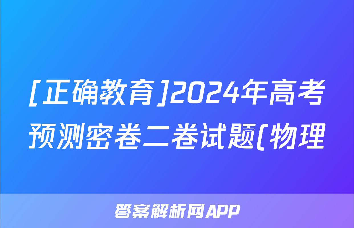 [正确教育]2024年高考预测密卷二卷试题(物理)正在持续更新,目前2025~2026英语周报答案网为大家整理了相关试题及答案,供大家查缺补漏,高效提升成绩。