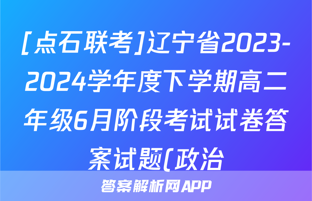[点石联考]辽宁省2023-2024学年度下学期高二年级6月阶段考试试卷答案试题(政治)正在持续更新,目前2025~2026英语周报答案网为大家整理了相关试题及答案,供大家查缺补漏,高效提升成绩。